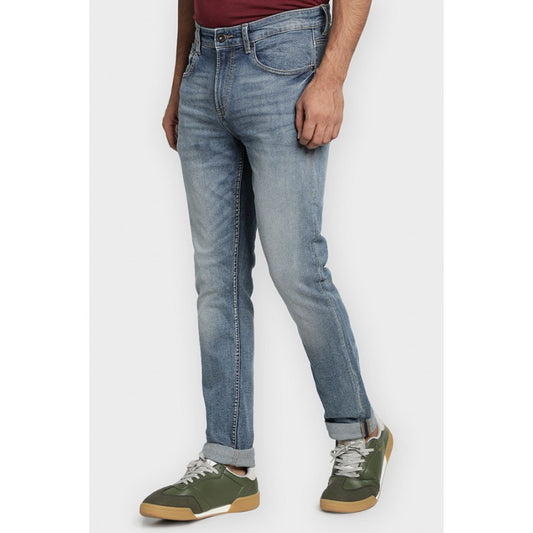 Men's Mid Blue Cotton Elasta...