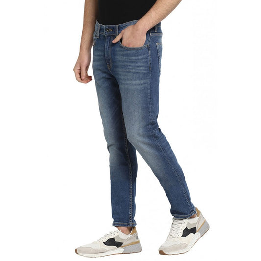 Men's Mid Blue Cotton Elasta...