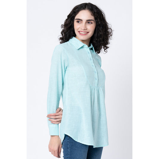 Women's Aqua Solid Blouse Top