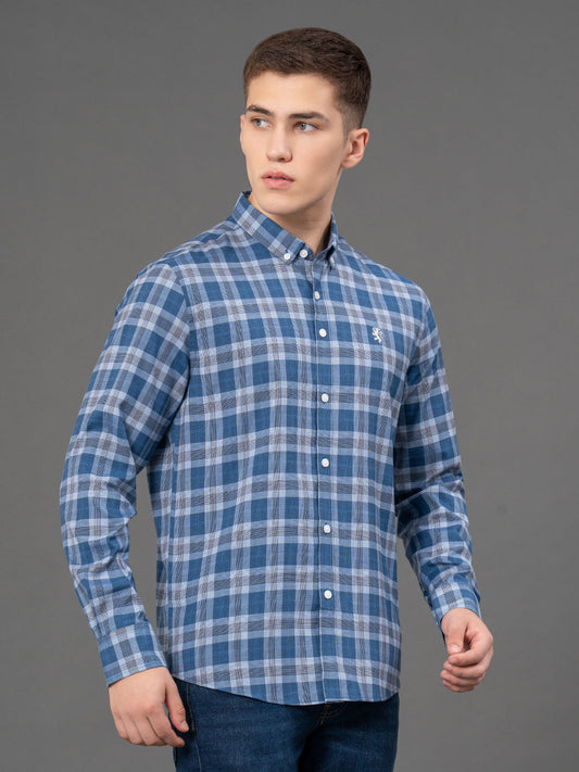 Airforce Blue Checked Shirt for Men