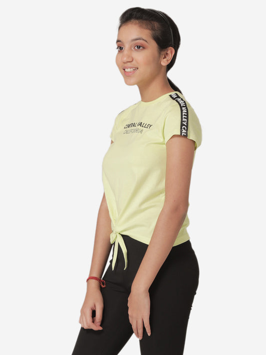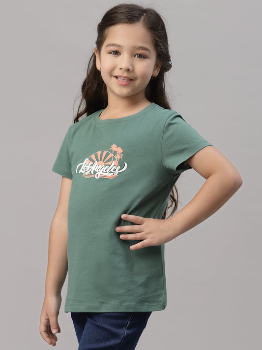Girls Green Round Neck T-Shirt