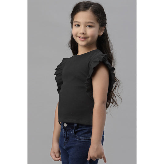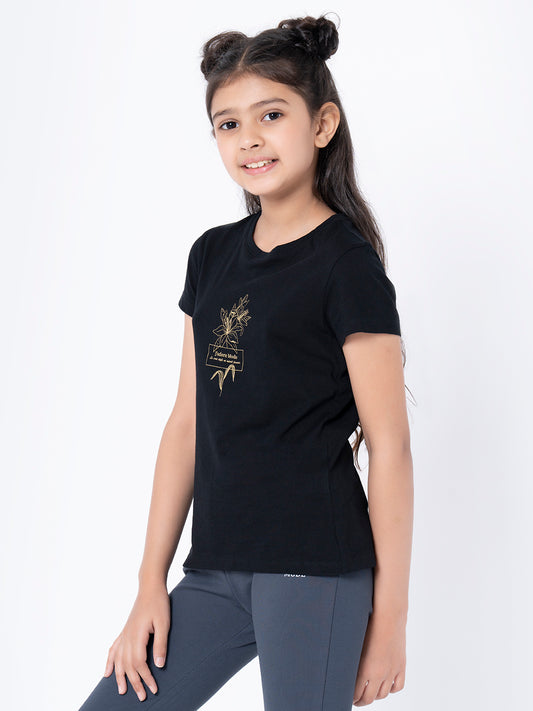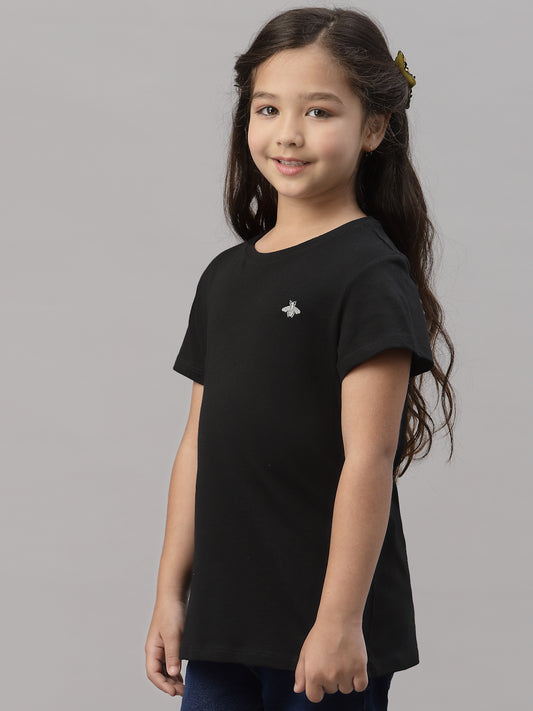 Girls Black Round Neck T-Shirt
