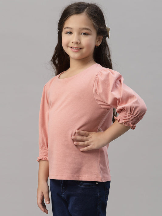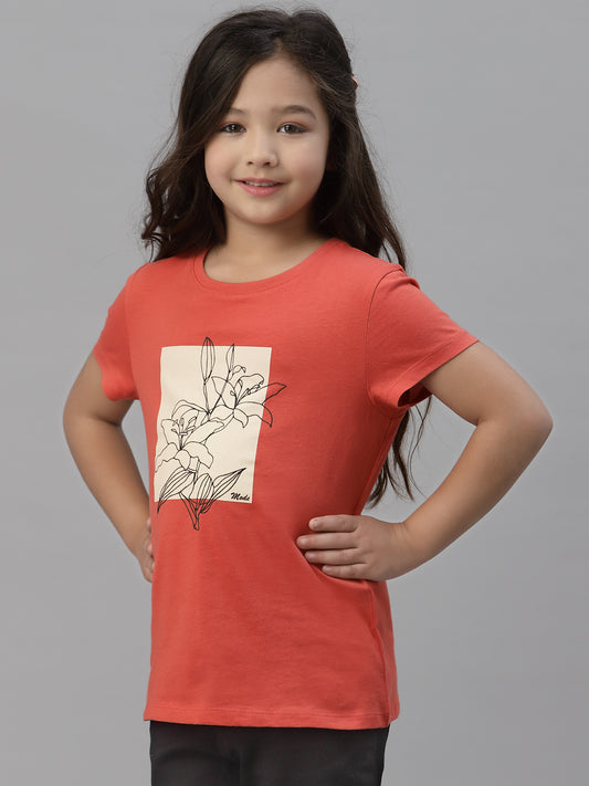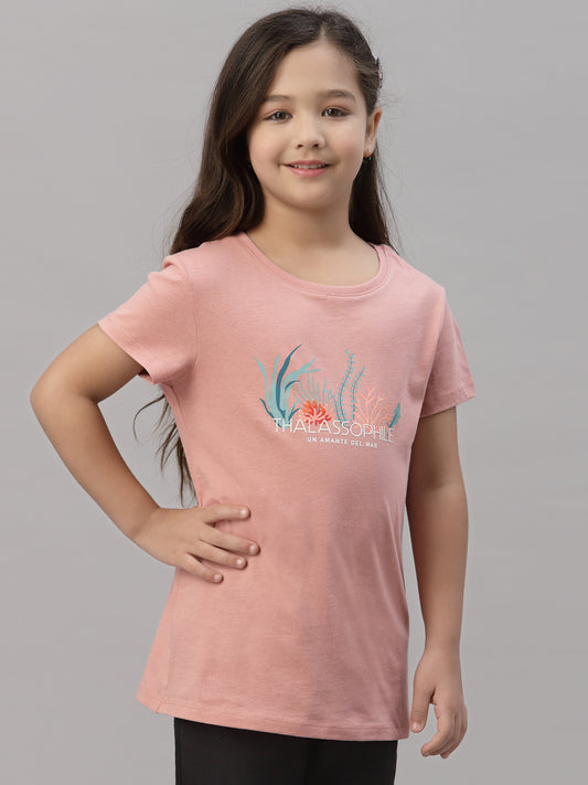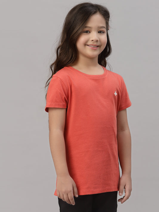 Girls Coral Round Neck T-Shirt