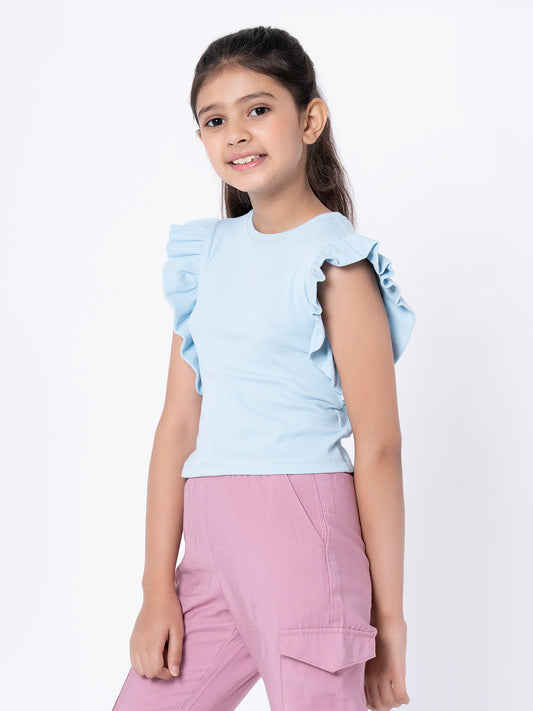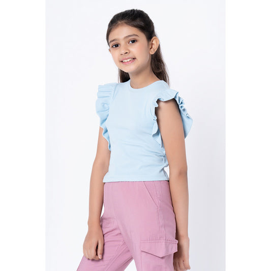 Girls Ice Blue Solid T-Shirt