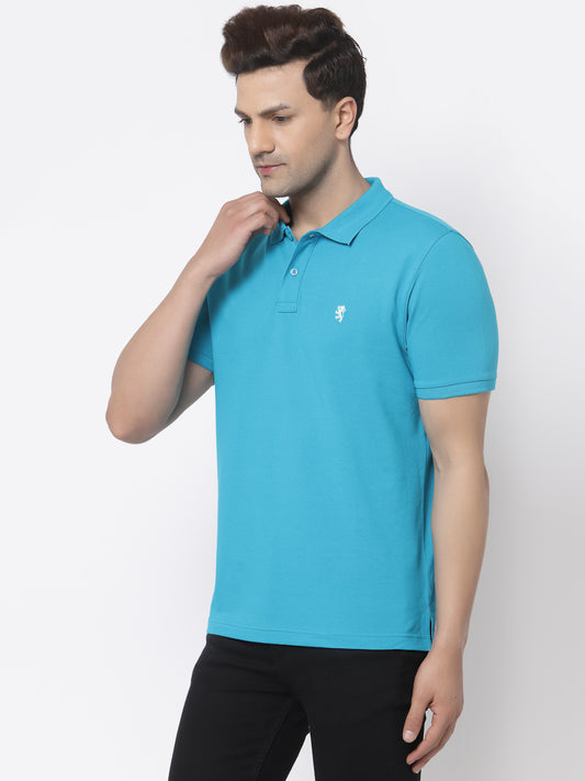 Men Blue Polo Neck T-Shirt