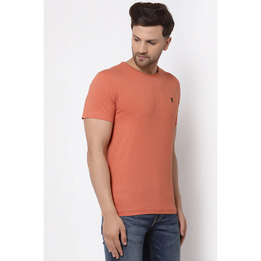 Men Peach Solid T-Shirt
