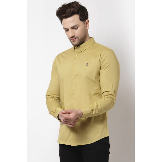 Men Pale Yellow Solid Shirt
