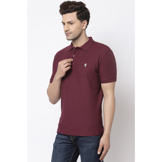 Men Plum Polo Neck T-Shirt