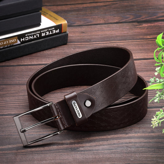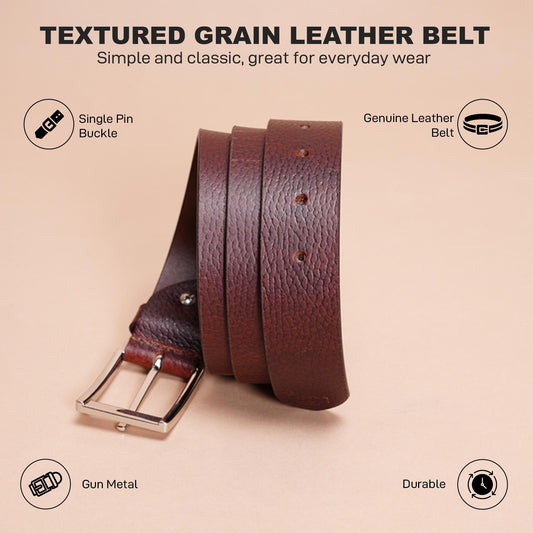 Brown Textured Leather Belt for Men