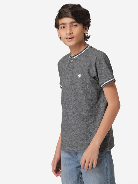 Boy's Dark Grey Melange Henl...