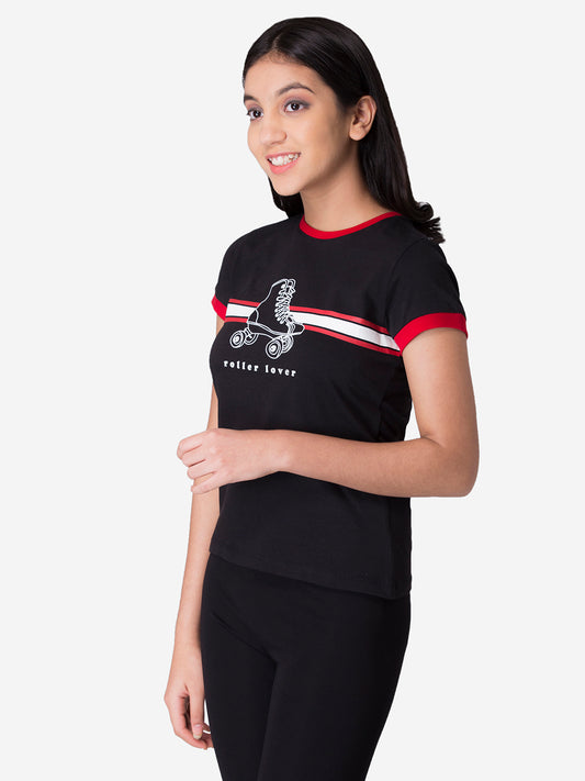 Girl's Black Round Neck T-Shirt
