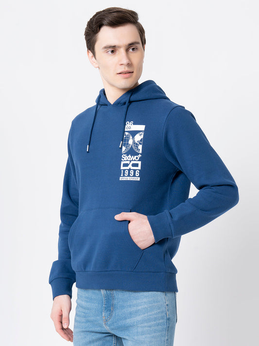 Men Navy Graphic Print Hoodie