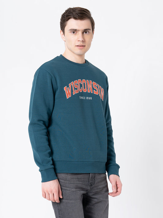 Men's Teal Graphic Print Swe...
