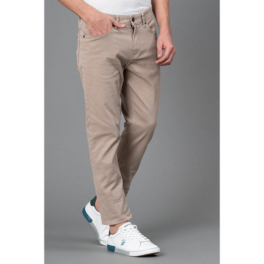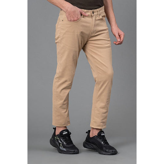 Men's Beige Solid Washed Cot...