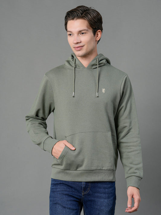 Men's Olive Solid Hoodie
