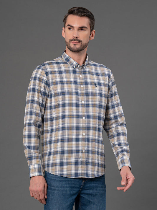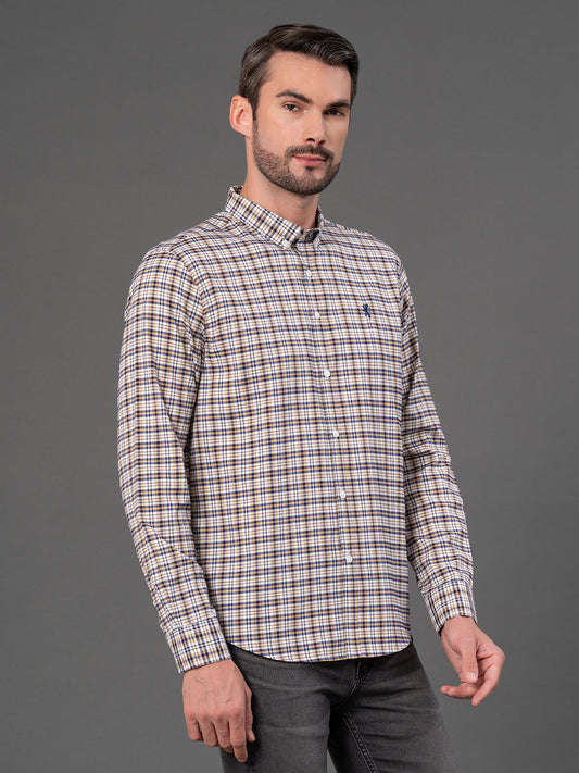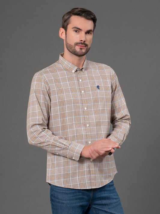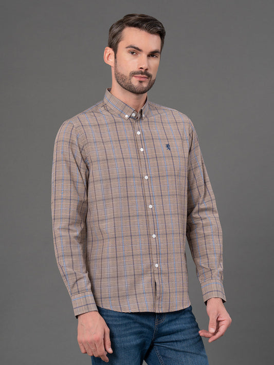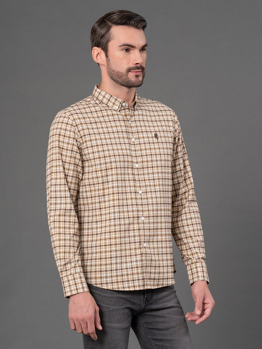 Light Brown Checked Shirt for Men