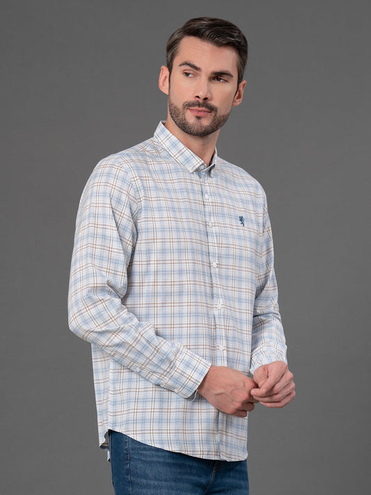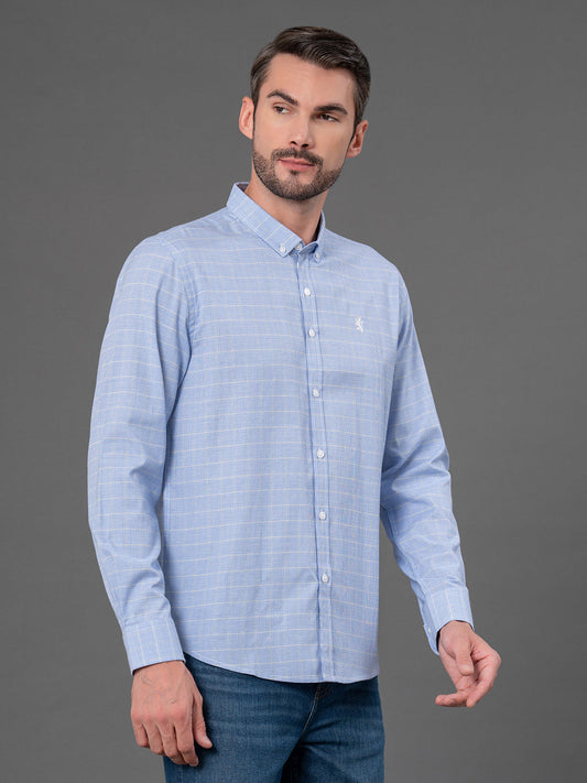 Sky Blue Checked Shirt for Men