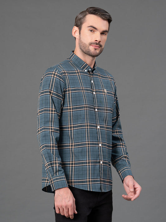 Slate Green Checked Shirt for Men