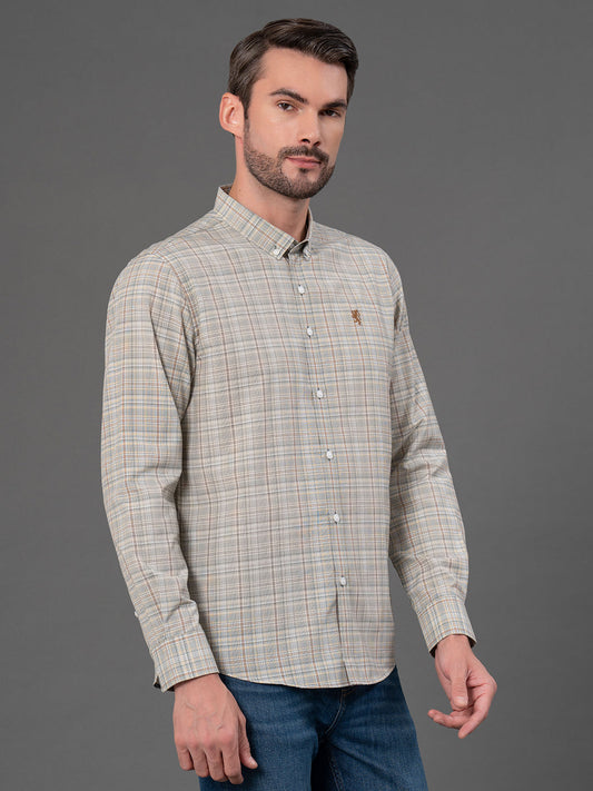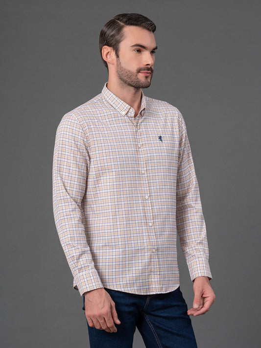 Beige Checked Shirt for Men