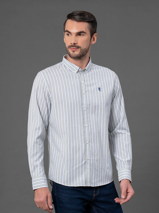 Light Green Striped Shirt for Men