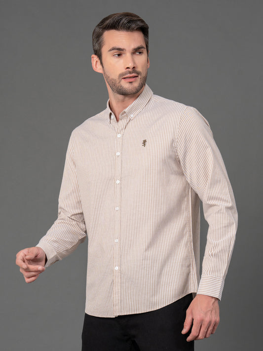 Light Brown Striped Shirt for Men