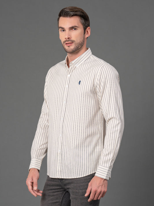 Cream Striped Shirt for Men