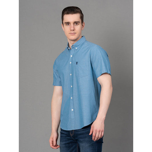 Men's Blue Pure Cotton Shirt