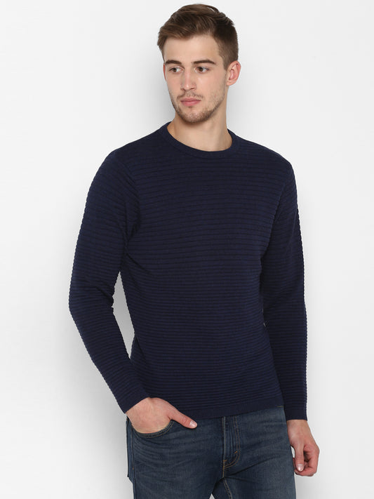 Men's Self Design Navy Sweater