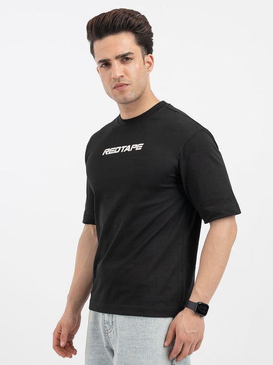 Red Tape Black T-Shirt for Men