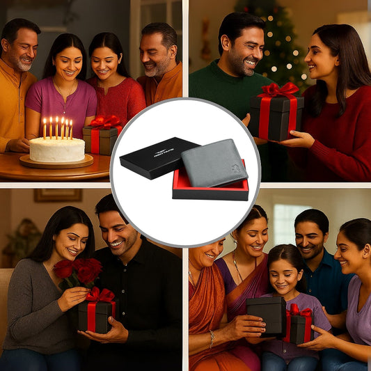 Grey Genuine Leather Wallet for Men