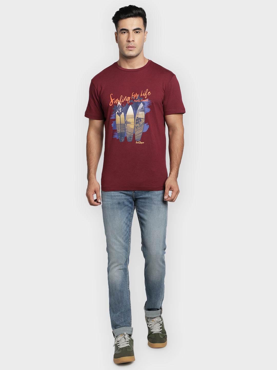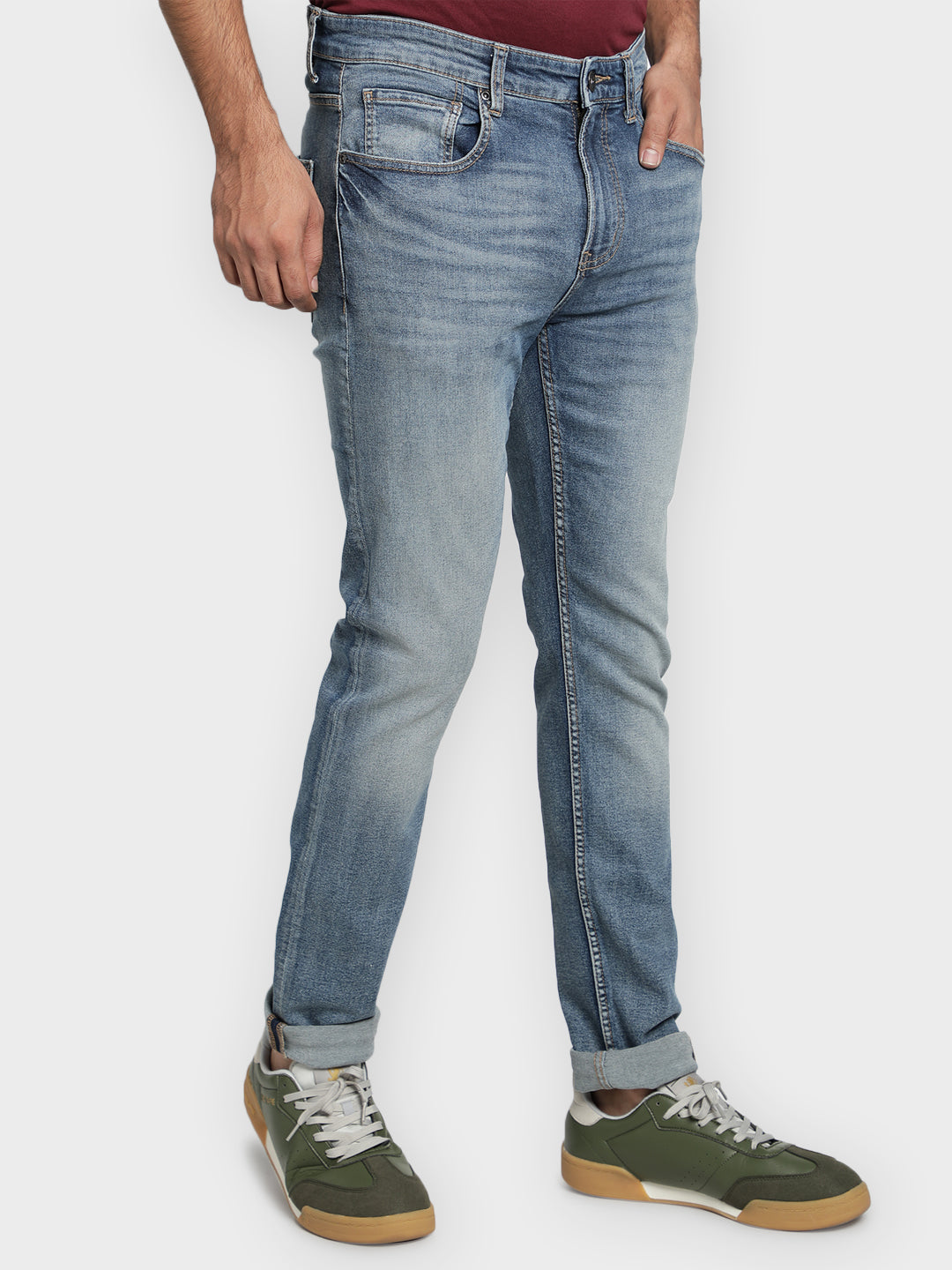 Benefits: With a regular fit, these jeans keep you comfy all day, whether you are relaxing or on the go. Made with a durable mix of cotton and spandex , they are not just soft but also built to last.