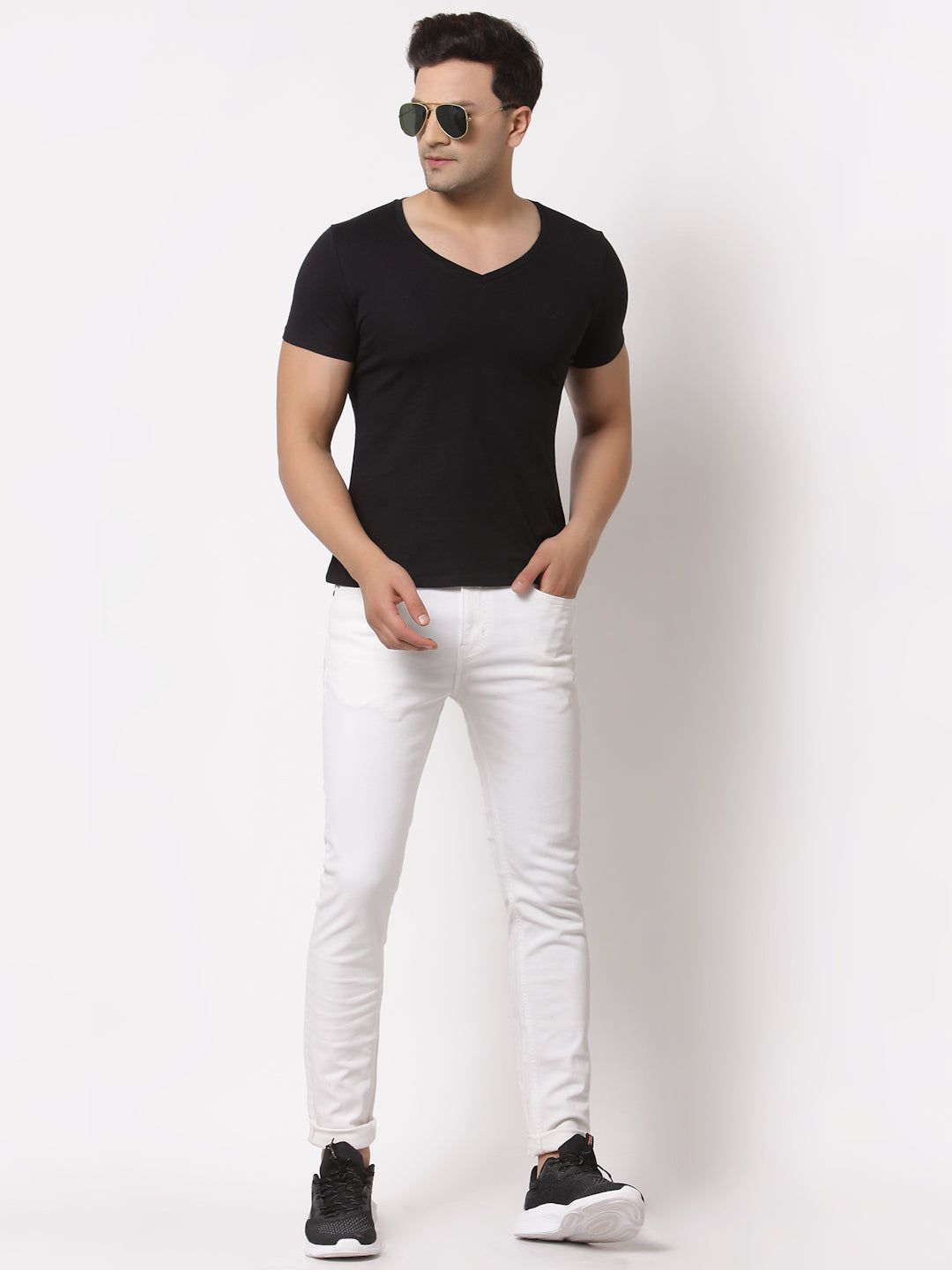 Crafted from a premium cotton and elastane blend, this piece offers a perfect balance of softness and stretch. The classic tone and solid design offer versatility while the skinny fit delivers a clean look. This piece is ideal for anyone looking to add a touch of modern style to their collection.