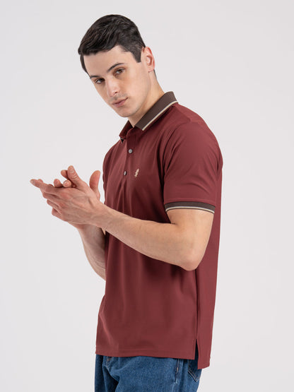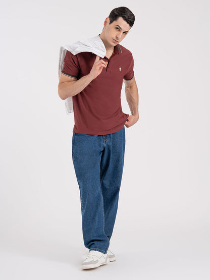 The Jacquard Collar Polo T-shirt is designed for a perfect blend of comfort and style. Made from premium material, this regular-fit polo features a jacquard pattern for a textured look. With its half sleeves and polo collar, this t-shirt offers a classic, versatile style suitable for casual or semi-casual occasions.