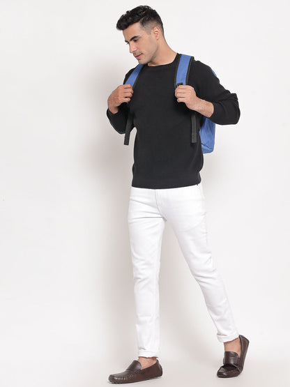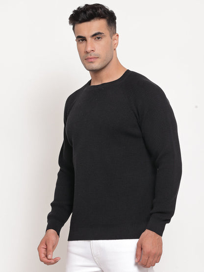 Men's Self Design Black Sweater