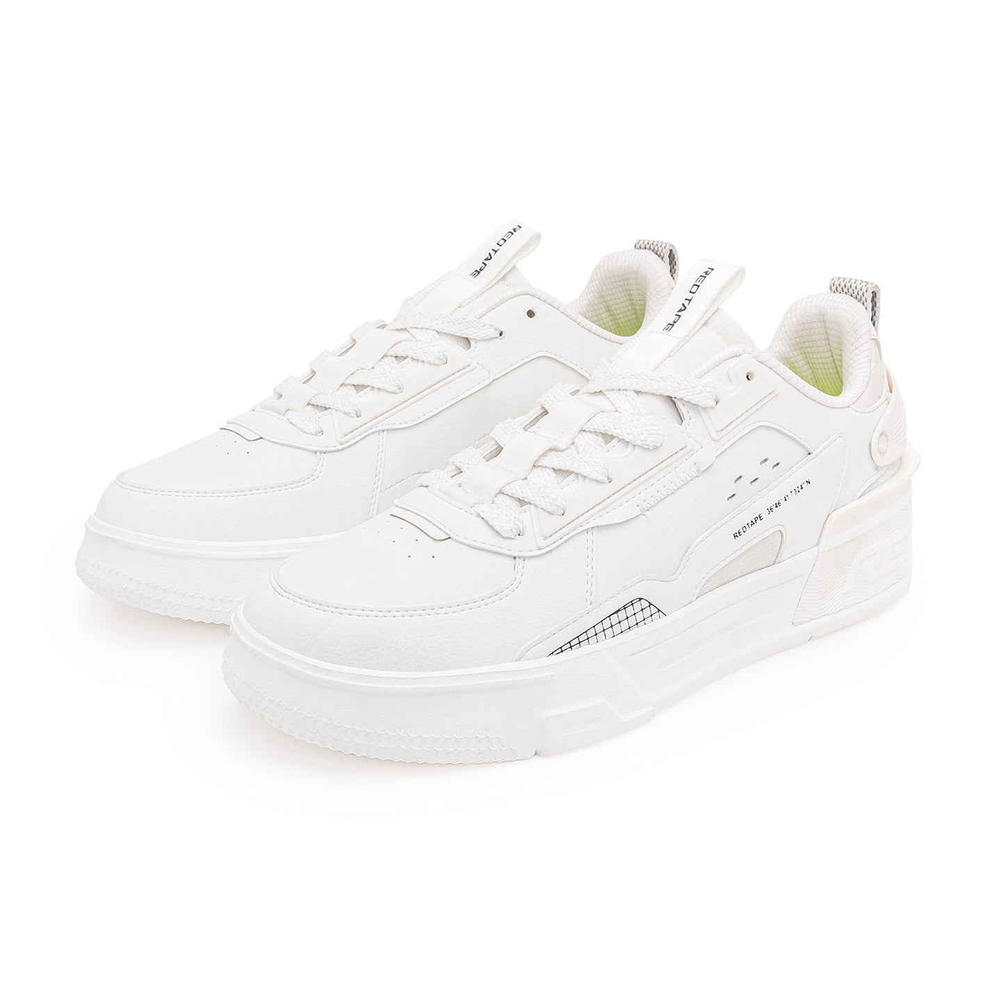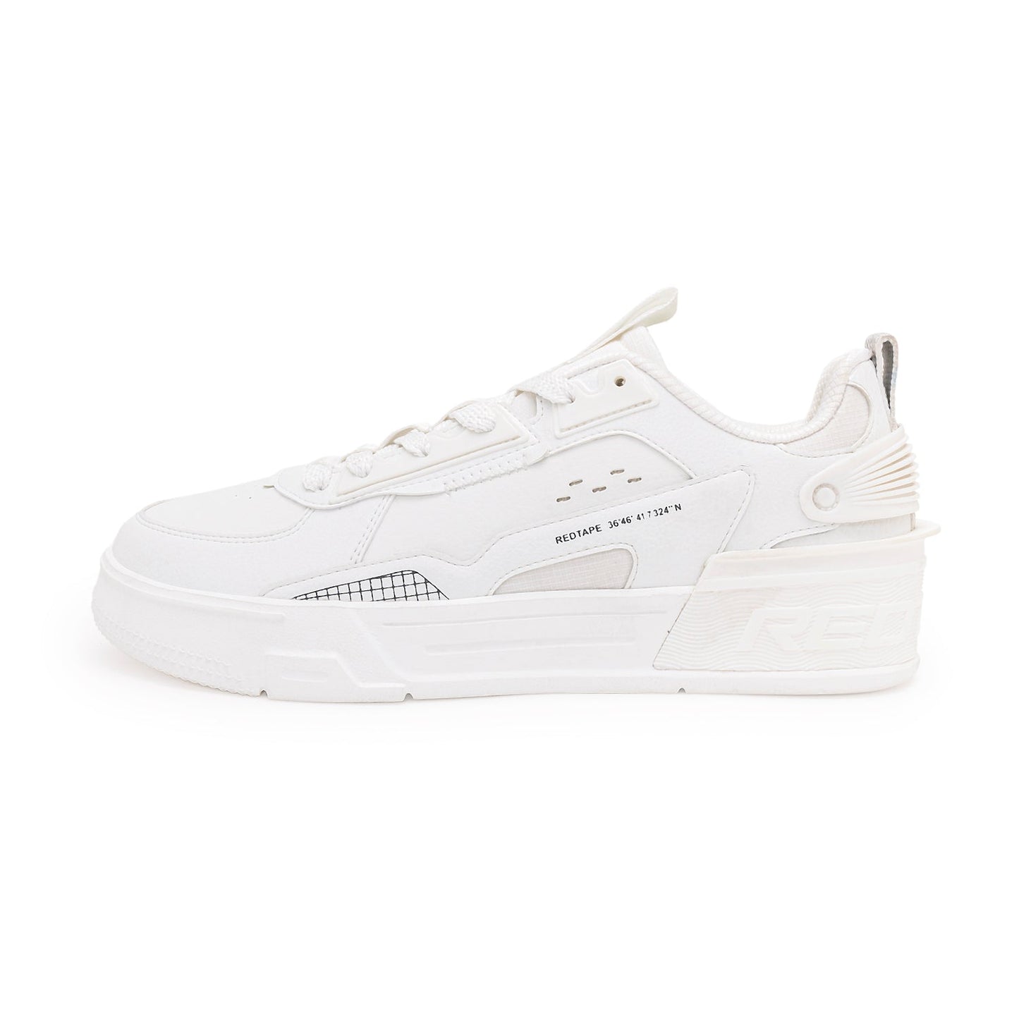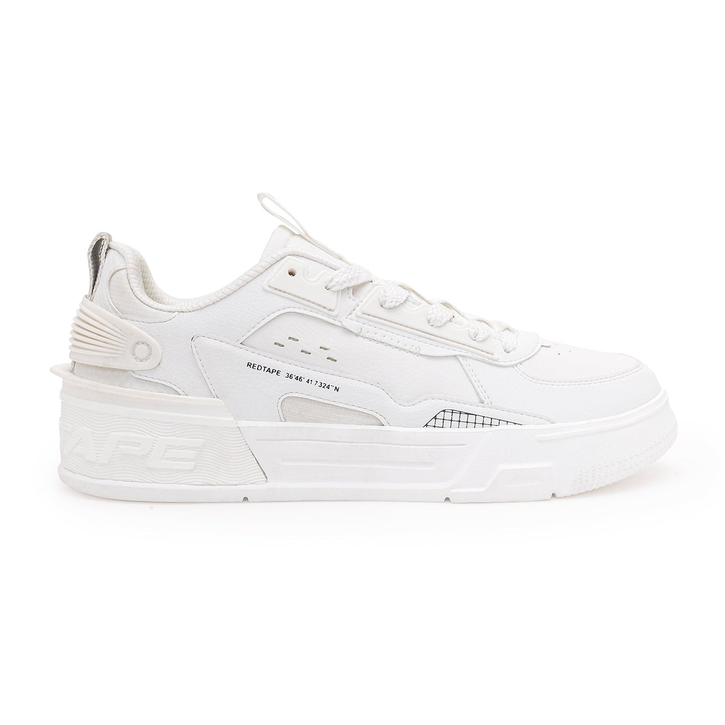 Upgrade your everyday fashion with Red Tape's Men's White Lace-Up Lifestyle Sneakers! These shoes boast a durable EVA+TPU Sole for ultimate comfort and longevity, while the sleek PU upper adds a stylish element to your outfit. They have a sleek design with grey detailing on a white background and a textured logo embedded on the side. Ideal for any casual event, step up your fashion game with Red Tape!
