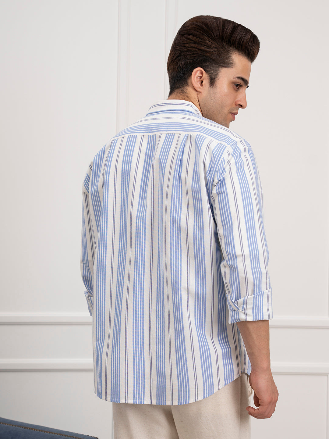 Product Type: Full Sleeve Shirt | Fit: Comfort | Pattern: Vertical Stripes | Occasion: Casual/Formal | Collar: Button Down | Pocket: Without Pocket
