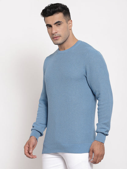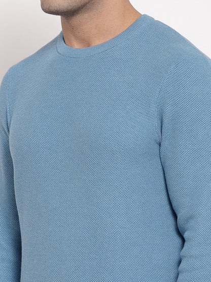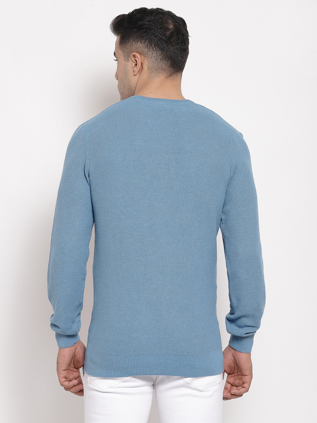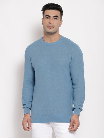 Expand your collection of casual of mid blue with self design pattern by Red Tape. Crafted by 100% COTTON, with knit fabric. It have feature of full sleeves which is suitable for casual wear. Its round neck with regular fit with mid blue as a base color looks really cool and worth flaunting every now and then. Its another feature is easily machine wash with similar colors, do not worry to wash with hand.