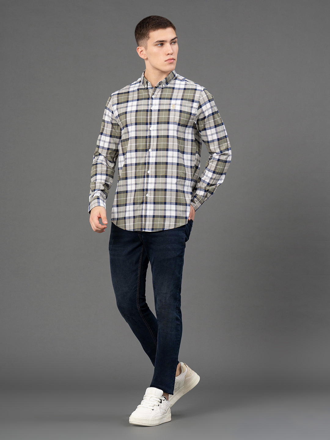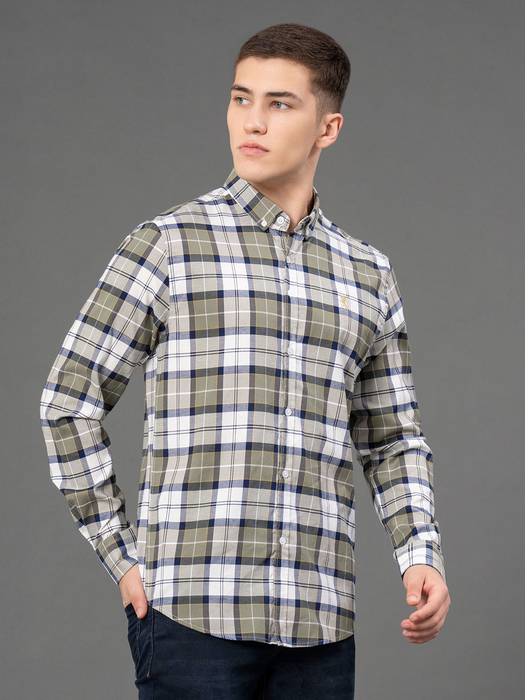Fabric: 50% Cotton, 50% Polyester Product Type: Shirt | Neck: Button down collar | Sleeve: Full sleeve | Fit: Regular fit | Pattern: Checked Benefits: This shirt is not only stylish but also incredibly comfortable! With its checked pattern and button-down collar, you'll look great and feel at ease. Upgrade your everyday look with this premium shirt, perfect for any occasion. Wash Care: Machine wash with similar colours.