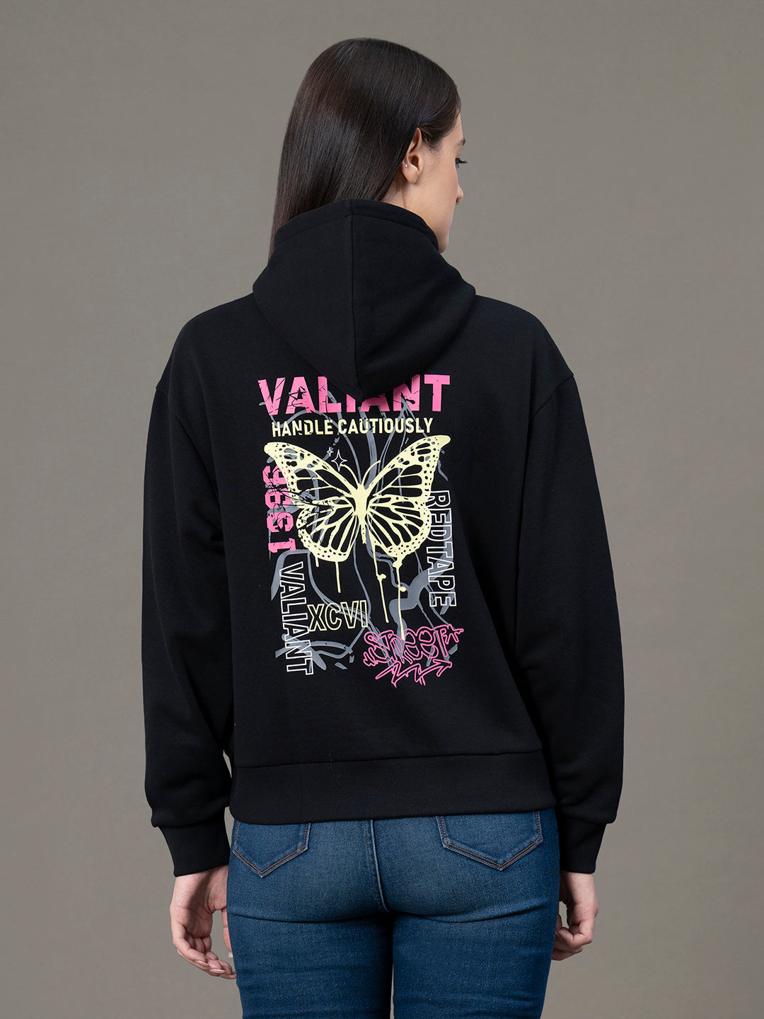 "Discover comfort and style with our Women's Graphic Hoodie.The full sleeves and hood keep you warm and the kangaroo pocket is perfect for keeping your hands snug or storing small essentials. With a baggy fit and a fun graphic print, it’s the go-to hoodie for any occasion.