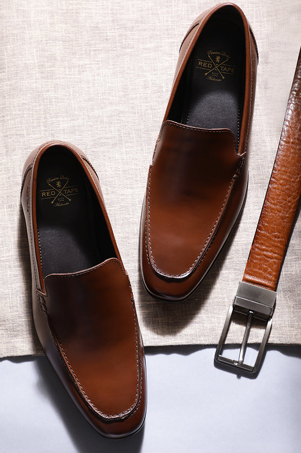 Defining class in the truest sense are the Tan dress shoes by Red Tape. They are designed in the convenient slip-on structure with smooth finish of the leather upper. The TPR sole manages your controlled and confident walk. Match the exclusive shoes with formal wear for grabbing attention.
