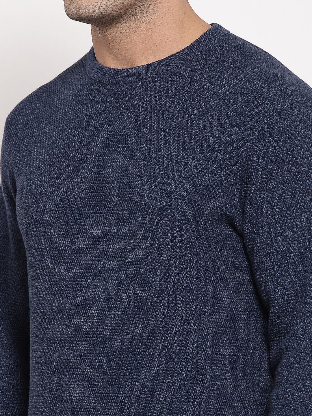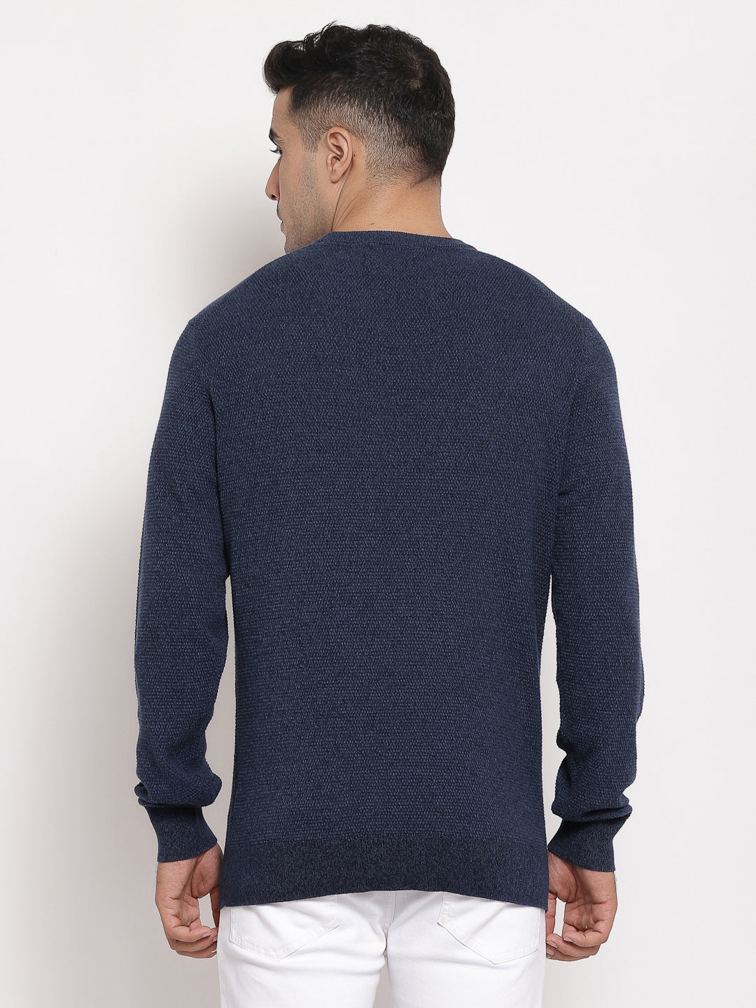 Don't think twIce, just shop this Blue sweater from Red Tape to look stunning. These winters add a great piece to your wardrobe. Wear this casual cotton sweater featuring a round neck in regular fit with full sleeves. The fabric material of this sweater is 100% cotton, 12 GG made by knit fabric. Wear this self design sweater with base color of Blue with White bottom and sporty shoes to look cool yet classy when stepping out for OffIce.