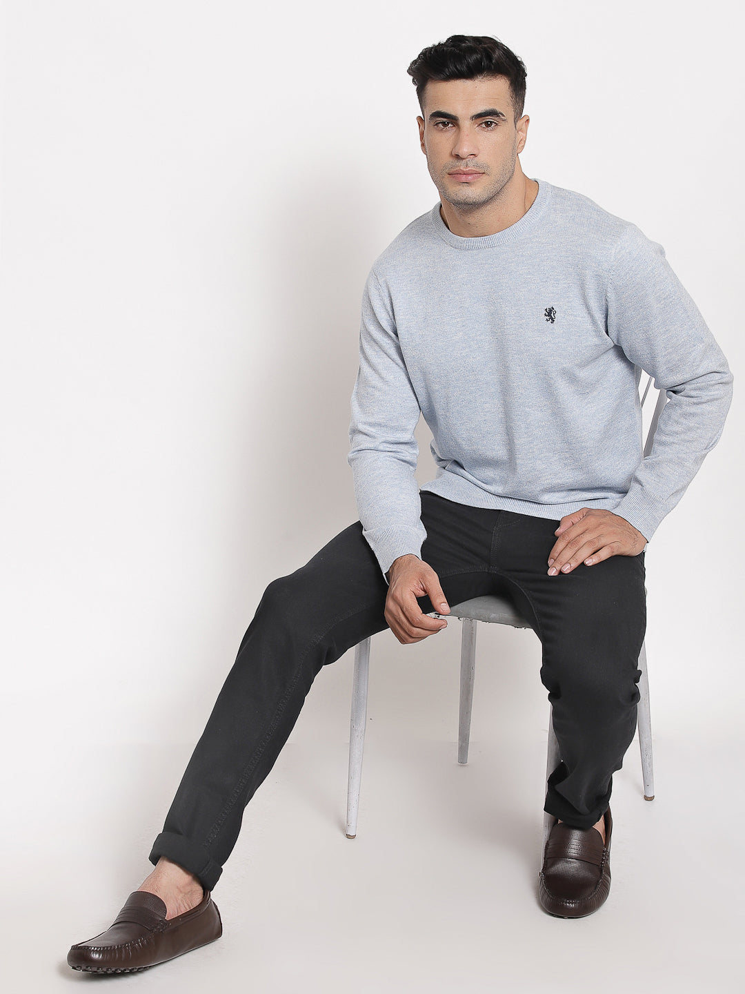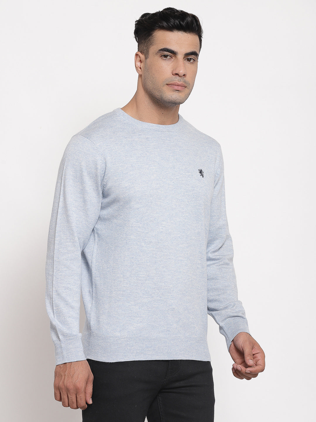 For a cosy winter ensemble, dress up in this Light Blue solid/ plain pattern sweater from Red Tape. It is crafted in knit fabric and 60% COTTON, 40% POLYESTER, 2/30, 12 GG fabric material that'll keep you fresh all day. It is also easy to wash, wash it on machine. Its round neck, regular fit and full sleeves just to add a dash of attraction to your overall look. By wearing this casual sweater with your plain shirts, tapered jeans and boots to look classy.