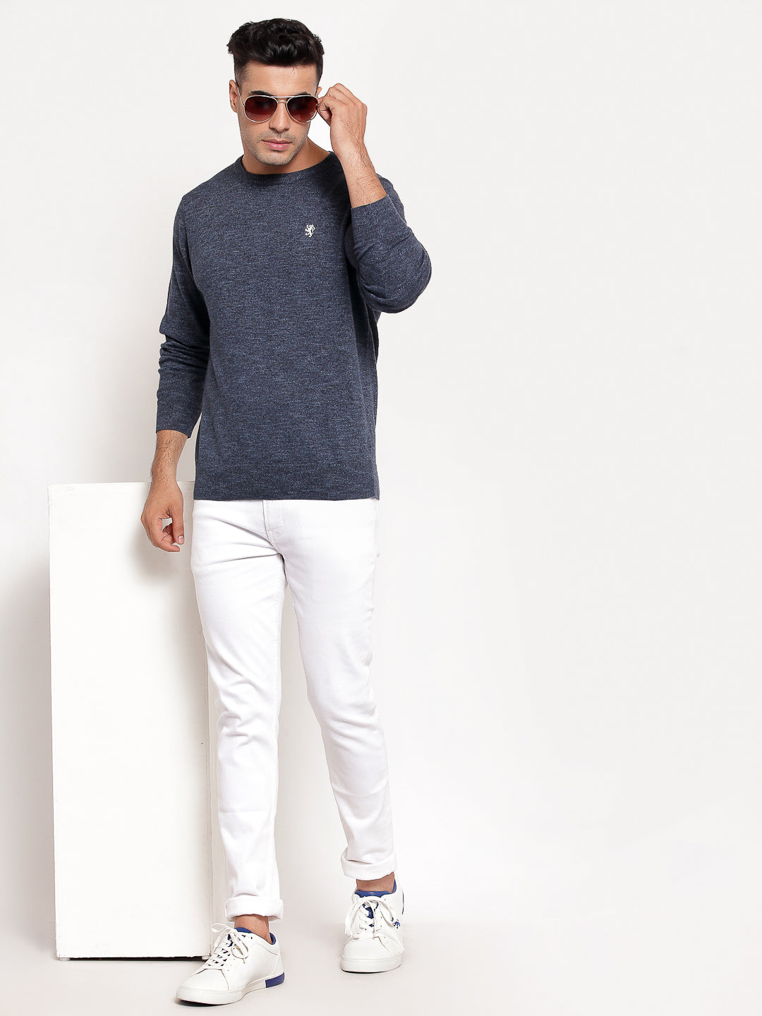 Add a touch of definition to an otherwise solid / plain look, full sleeves with this MidNight Blue colored sweater from the house of Red Tape. A wear-anywhere piece of regular fit with full sleeves, created using 60% COTTON, 40% POLYESTER, 2/30, 12 GG, base material with knit fabric, just to add a dash of attraction to your overall look. Meant to last a lifetime, this piece will make you look smart no matter what you wear it with. Easily wash it in machine with similar colors. Pair it with well-fitted trousers and a pair of oxford shoes for a classy look on any casual occasion.