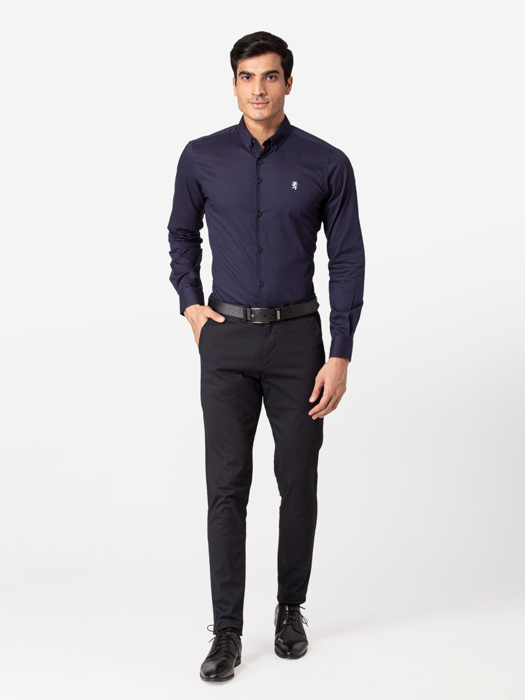 Slip on this shirt to enjoy its breathable and airy texture and premium details balancing the Navyand White. A go- to for formals or casuals with a button down collar and mimimal buttons Invest in this statement piece and keep forever for its simplicity and comfort.
