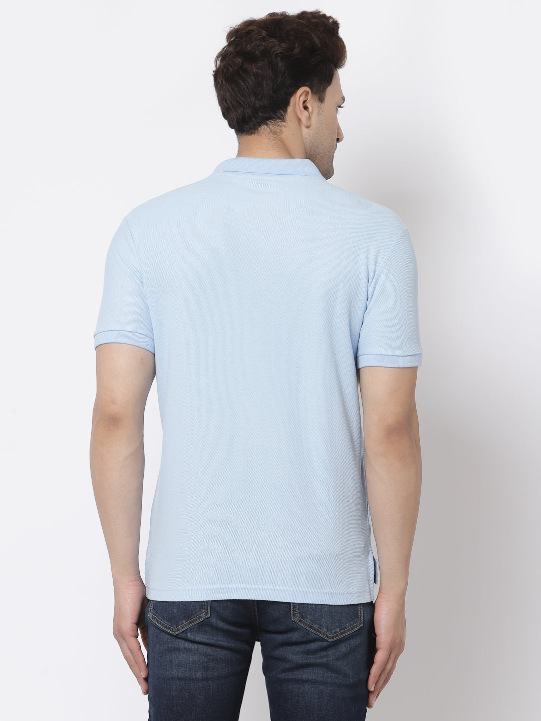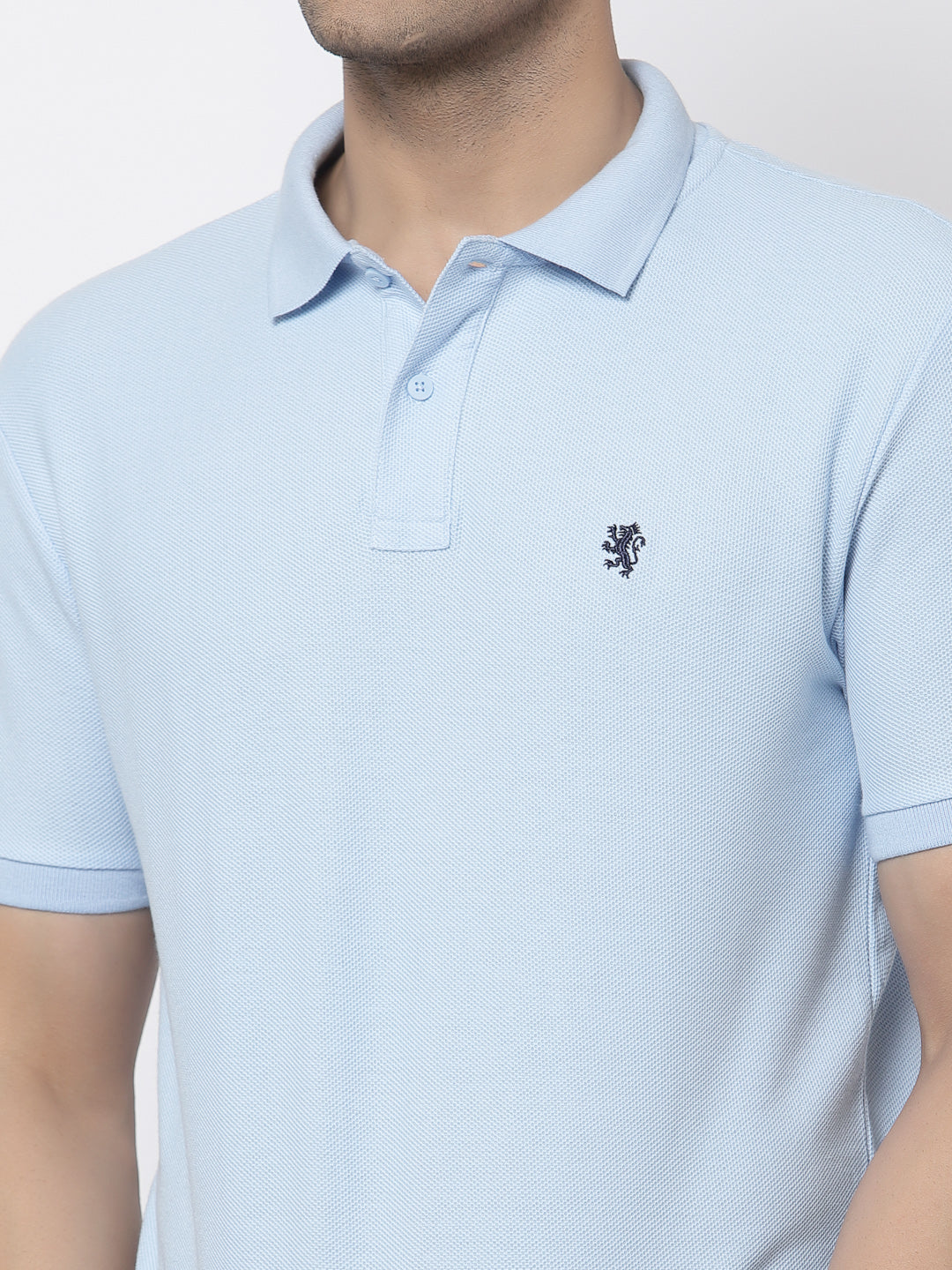 Wallow in charming choIce for your weekend-wear range like this Powder Blue t-shirt from RED TAPE. Showcasing a embroidered logo on solid pattern for added appeal, the casual-fit creation comes rendered from 100% cotton, honey comb weave & 220 GSM fabric, flaunting an half sleeves & a collar neck.
