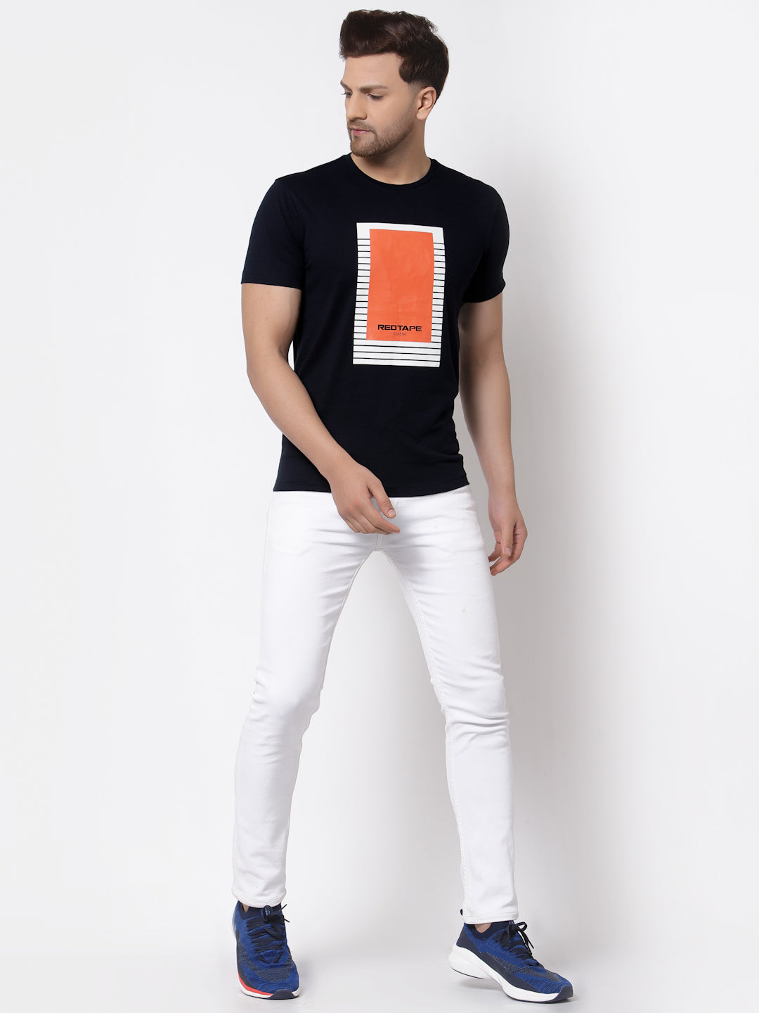 Get the perfect finish to your laid-back looks with this Navy t-shirt from RedTape. Made from cotton fabric, this t-shirt is light in weight. Featuring a round neck, short sleeves and graphic print pattern, this regular fit t-shirt ensures a comfort all day long. This t-shirt is sure to make you look smart and presentable when paired with faded jeans.
