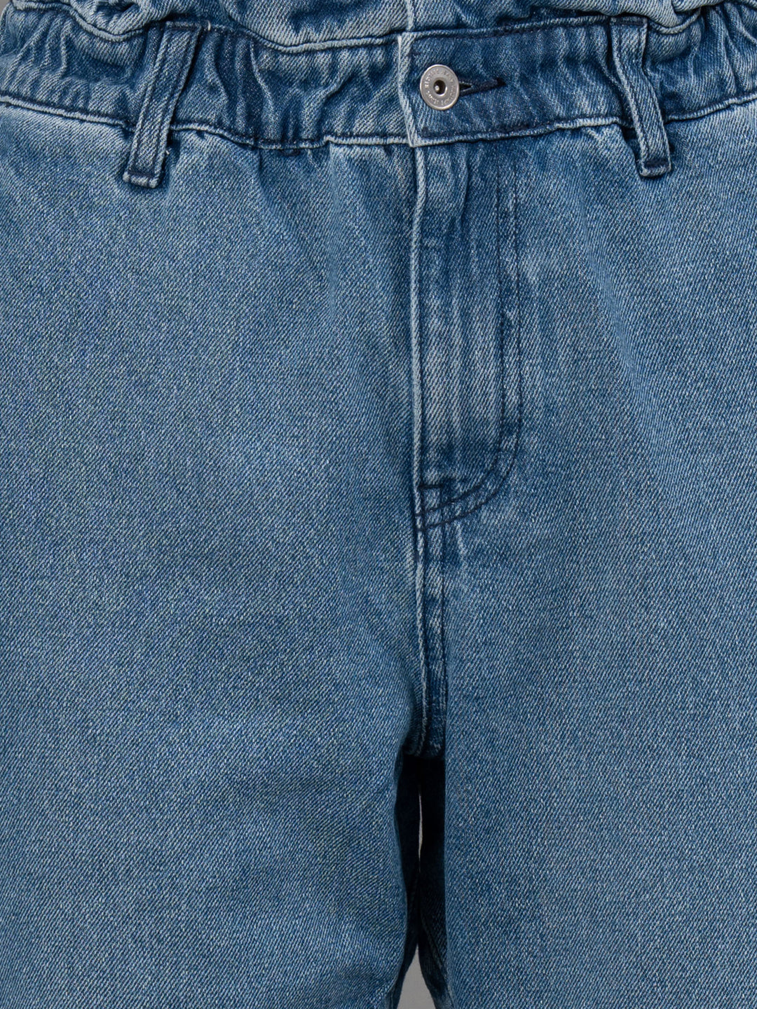 Crafted from high-quality 100% cotton, these jeans Offer both comfort and style. The gathered waist features an elastic waistband, ensuring a perfect fit every time.