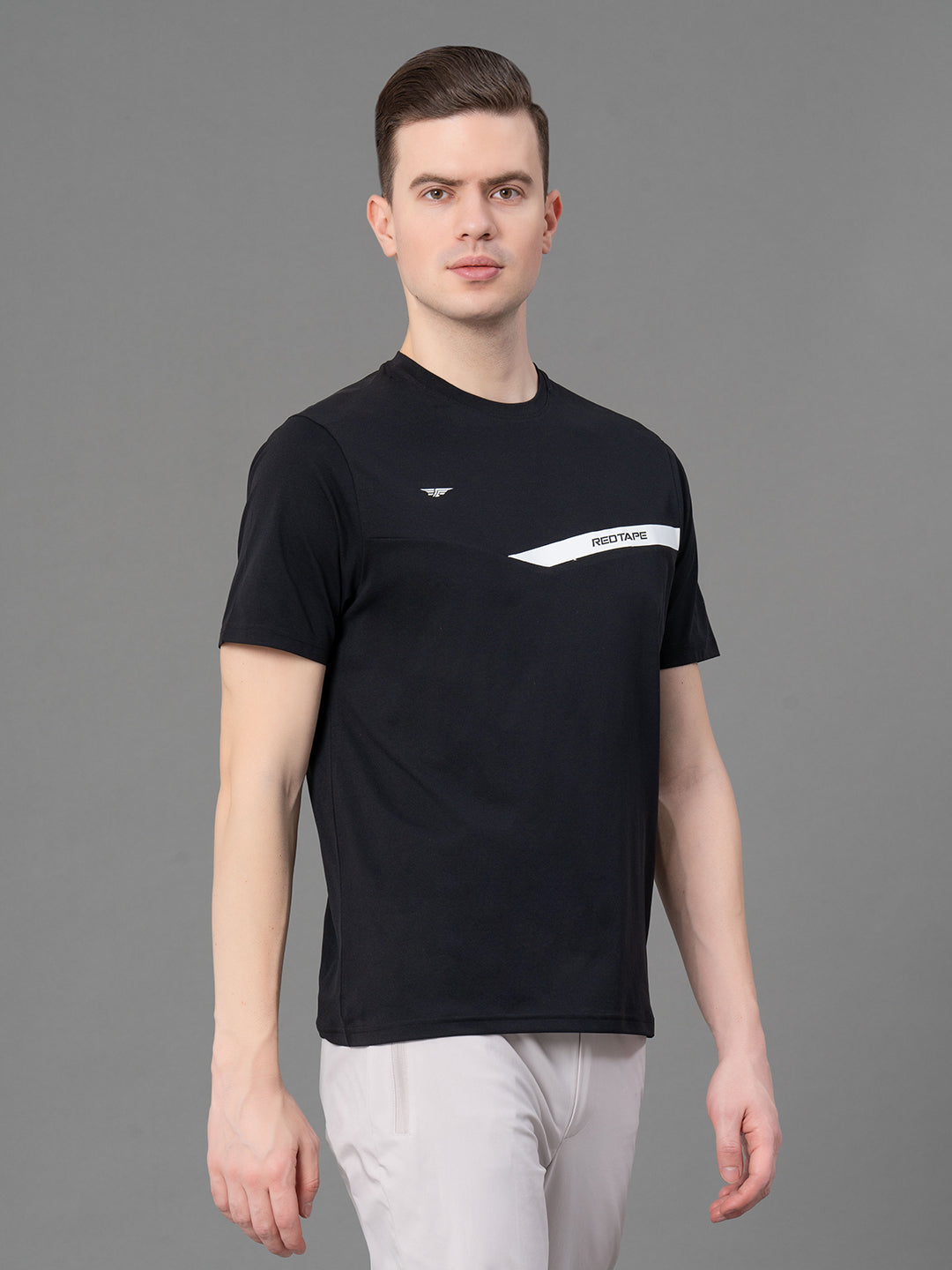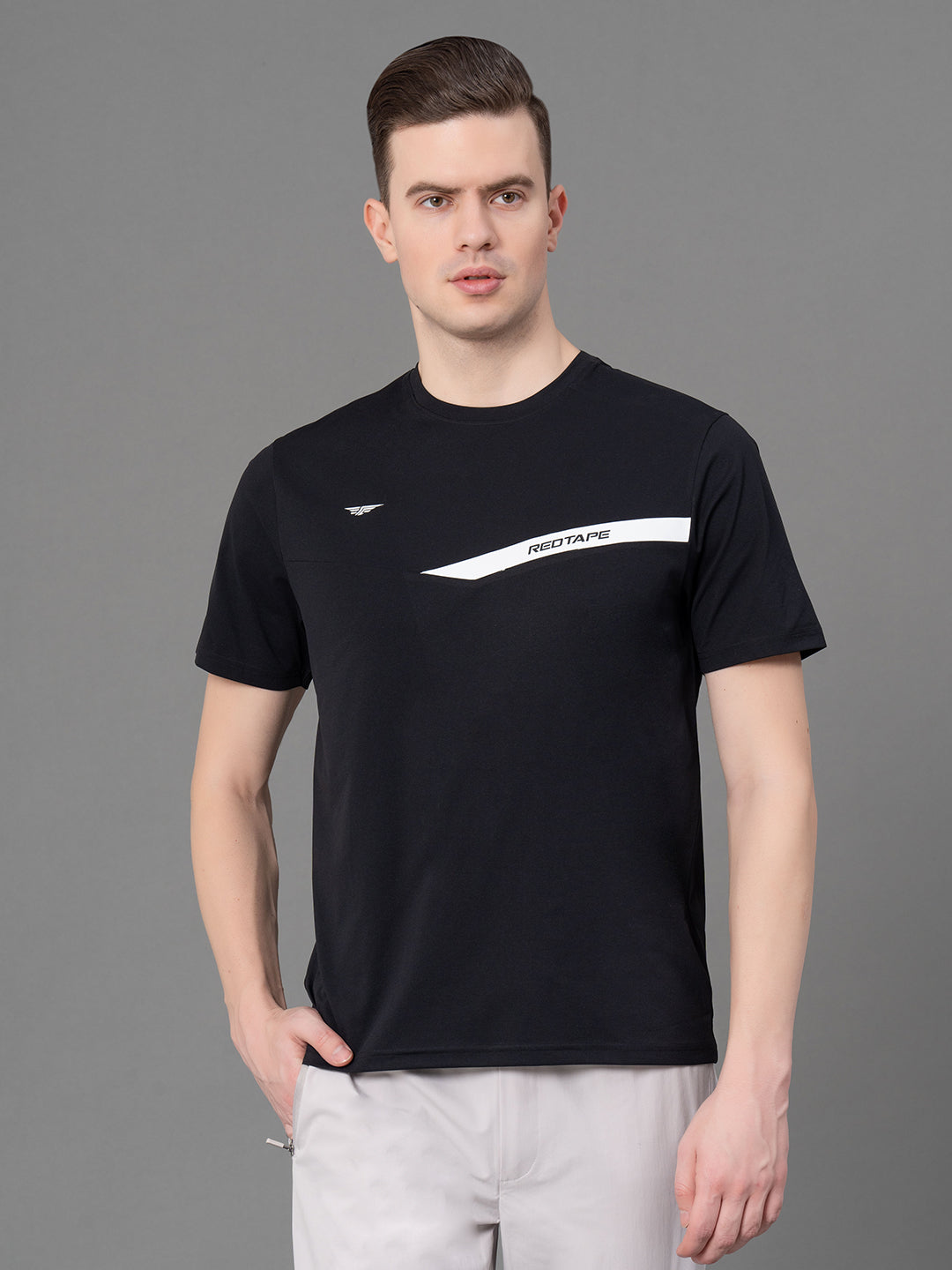Made from a mix of 88% nylon and 12% elastane, the fabric is soft and durable. With half sleeves and a sporty print, this tee adds a bit of flair to your casual style.