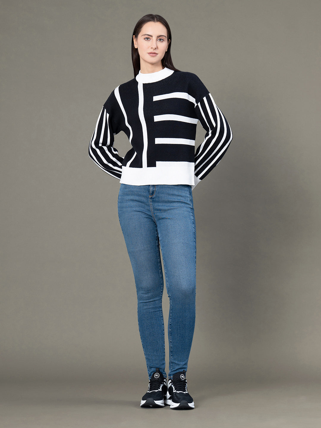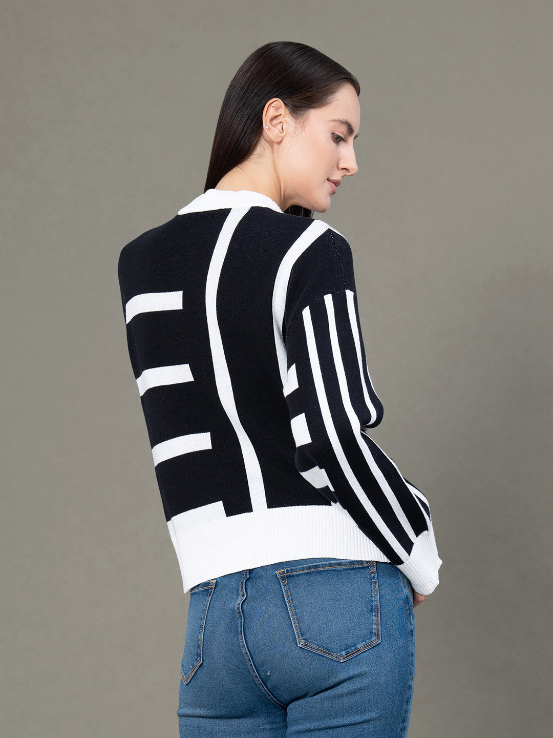 Product Type: Sweater | Neck: Round Neck | Sleeve: Drop Shoulder Full Sleeve | Fit: Regular Fit | Pattern: Abstract