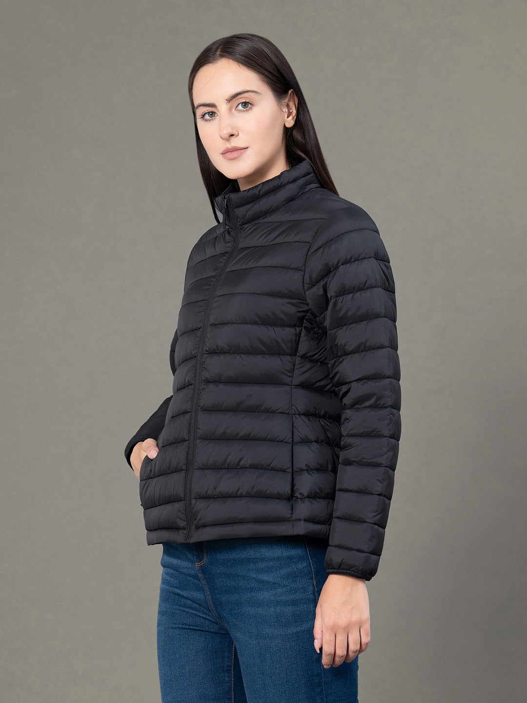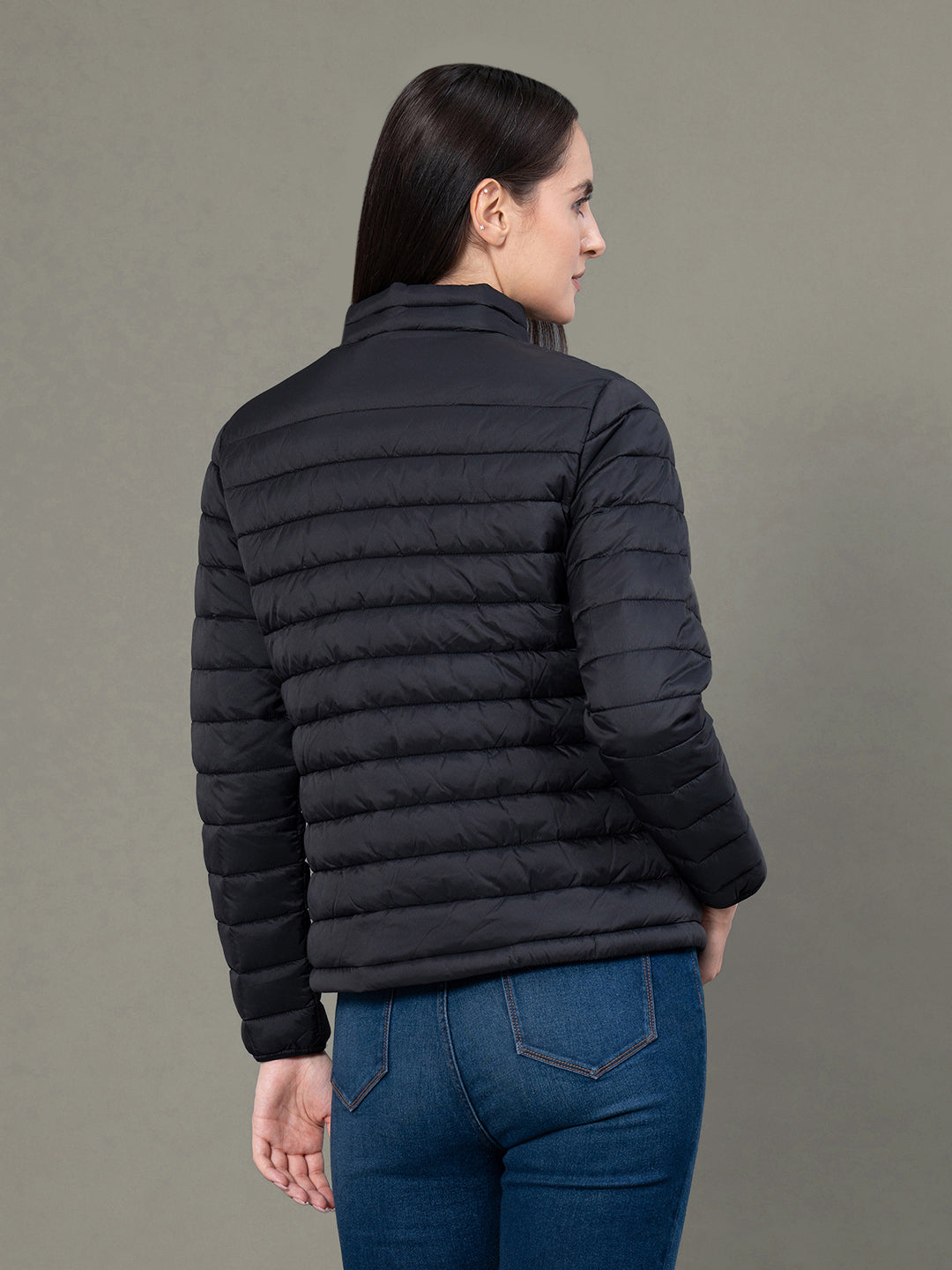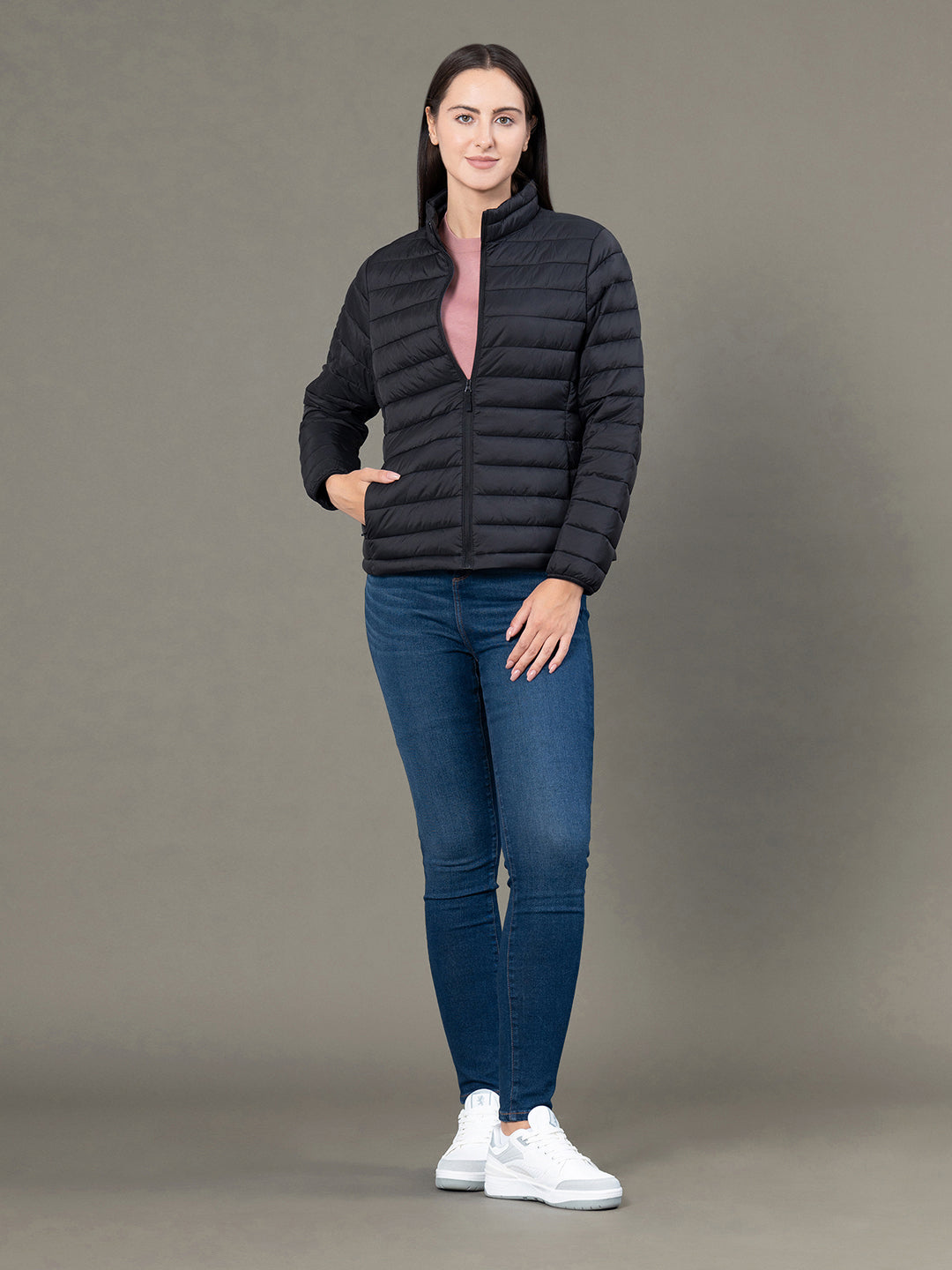This women's full sleeve padded jacket is designed for both comfort and style. Made from 100% nylon, it’s lightweight yet protective against the weather. With its zip closure and regular fit, this jacket provides both warmth and a contemporary look.